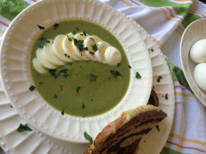 5. Return to heat, stir in milk, and stir continuously until thickened. Do not bring to a boil! Portion into bowls and garnish with a sliced hard-boiled egg. Serve with a grilled cheese sandwich.