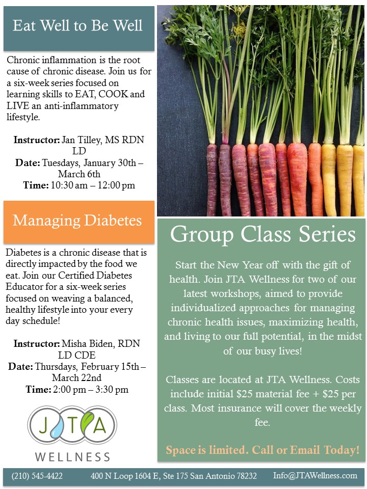 2018 Classes: Eat Well to Be Well (Anti-Inflammatory Living) & Managing Diabetes Call our office at (210) 545-4422 or email info@dev6.odysseydesignhosting.com to learn more or register today! JTA Wellness2018-01-08T20:55:24-06:00 Share This Story, Choose Your Platform! FacebookTwitterRedditLinkedInPinterest Related Posts Oven Baked Cheeseburger Sliders February 28th, 2025 | 0 Comments Roasted Ranch Potatoes February 26th, 2025 | 0 Comments Mexican Vegetable Soup December 3rd, 2024 | 1 Comment Toasted Turkey, Cranberry, and Brie Sandwich with Fried Sage October 3rd, 2024 | 0 Comments Apple Gouda Stuffed Chicken Breasts with Smoky Roasted Sweet Potatoes September 5th, 2024 | 0 Comments Leave A Comment Cancel replyComment Save my name, email, and website in this browser for the next time I comment. Δ