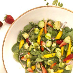 Mango Strawberry Spinach Salad with Cilantro-Lime Dressing