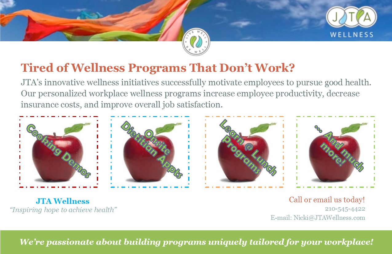 Whether you have 2 or 2000+ employees, JTA works with companies of all sizes in San Antonio to create health and wellness programs designed to reduce health care costs by improving productivity, employee morale, and retention.